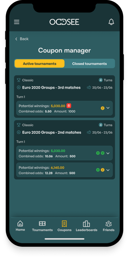 Oddsee is an online platform with tournaments related to sport events where users compete in predicting the results. Being safe alternative to sports betting, Oddsee brings the fun of social competition.